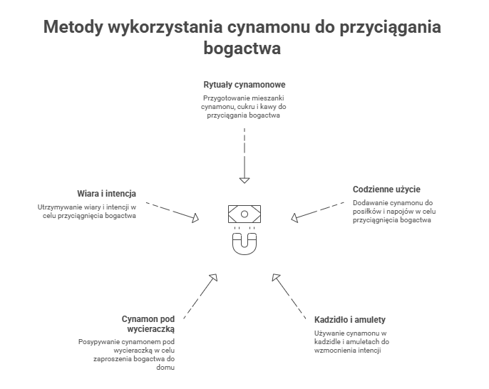 Magia cynamonu może również przeniknąć do naszych codziennych czynności. Proste dodanie tej przyprawy do porannego posiłku lub napoju może sprawić, że poczujemy się jak magnes przyciągający do siebie dostatek przez resztę dnia. Cynamon veersuje tutaj jako symbol bogactwa, który ma moc przyciągania finansowej fortuny.