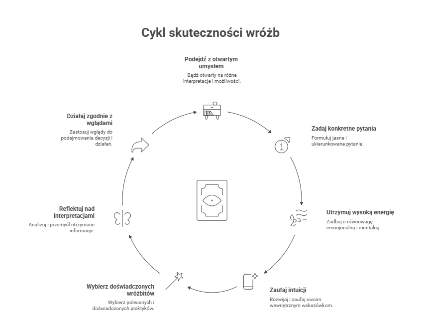 Po drugie, dokładnie przemyśl pytanie, które chcesz zadać wróżce. Jadnoznaczne, konkretne pytania często prowadzą do konkretniejszych i bardziej użytecznych odpowiedzi. Pamiętaj, że pytanie typu „Jak mogę poprawić swoje relacje z partnerem?” będzie bardziej produktywne niż „Czy mój partner jest mi wierny?”. Ponadto, zachowaj otwartość na różne interpretacje i pozwól sobie na przemyślenie otrzymanych informacji w odniesieniu do swojego osobistego życia.