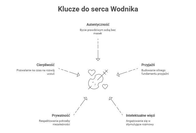 Wodnik, jako wizjoner i myśliciel, ceni autentyczność myśli i ducha. Największą nieszczerością jest dla niego udawanie, że podzielasz jego poglądy tylko po to, by się przypodobać, lub próba zmanipulowania go poprzez emocje (szantaż emocjonalny). Szanuje partnera, który otwarcie wyraża własne, unikatowe (nawet kontrowersyjne) zdanie.