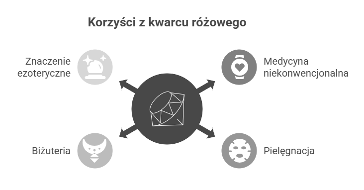 Zastosowanie kwarcu różowego w medycynie niekonwencjonalnej jest szerokie. Wierzy się, że kamień ten łagodzi dolegliwości serca, wspiera układ krążenia i wzmacnia odporność. Jego uspokajająca energia pomaga w stanach lękowych, stresie i nerwowości. Dodatkowo przyswaja się mu wpływ na płodność oraz korzystne działanie podczas cyklu menstruacyjnego. W praktykach duchowych kwarc różowy ułatwia medytację i promuje harmonię wewnętrzną.