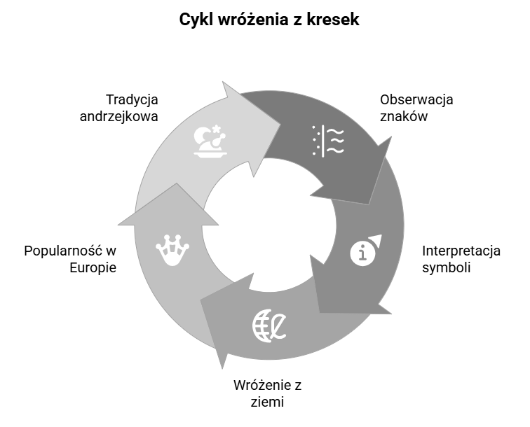 Symbole te były początkowo kreślone na ziemi, a ich interpretacja miała zakorzenić istotę wróżb w żywiole ziemi, od której w wielu kulturach wierzono, że wywodzą się wszelkie moce i energie. W Europie, wróżby z kresek rozwinęły swą popularność w średniowieczu, gdzie szybko stały się elementem ludowej tradycji, osiągając szczyt zainteresowania podczas wieczorów andrzejkowych, które z czasem przekształciły się w doroczną zabawę wróżbiarską.